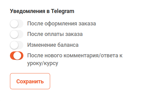 В разделе Профиль вы можете подключить уведомления, чтобы получать информацию обо всех новых событиях в вашем проекте.